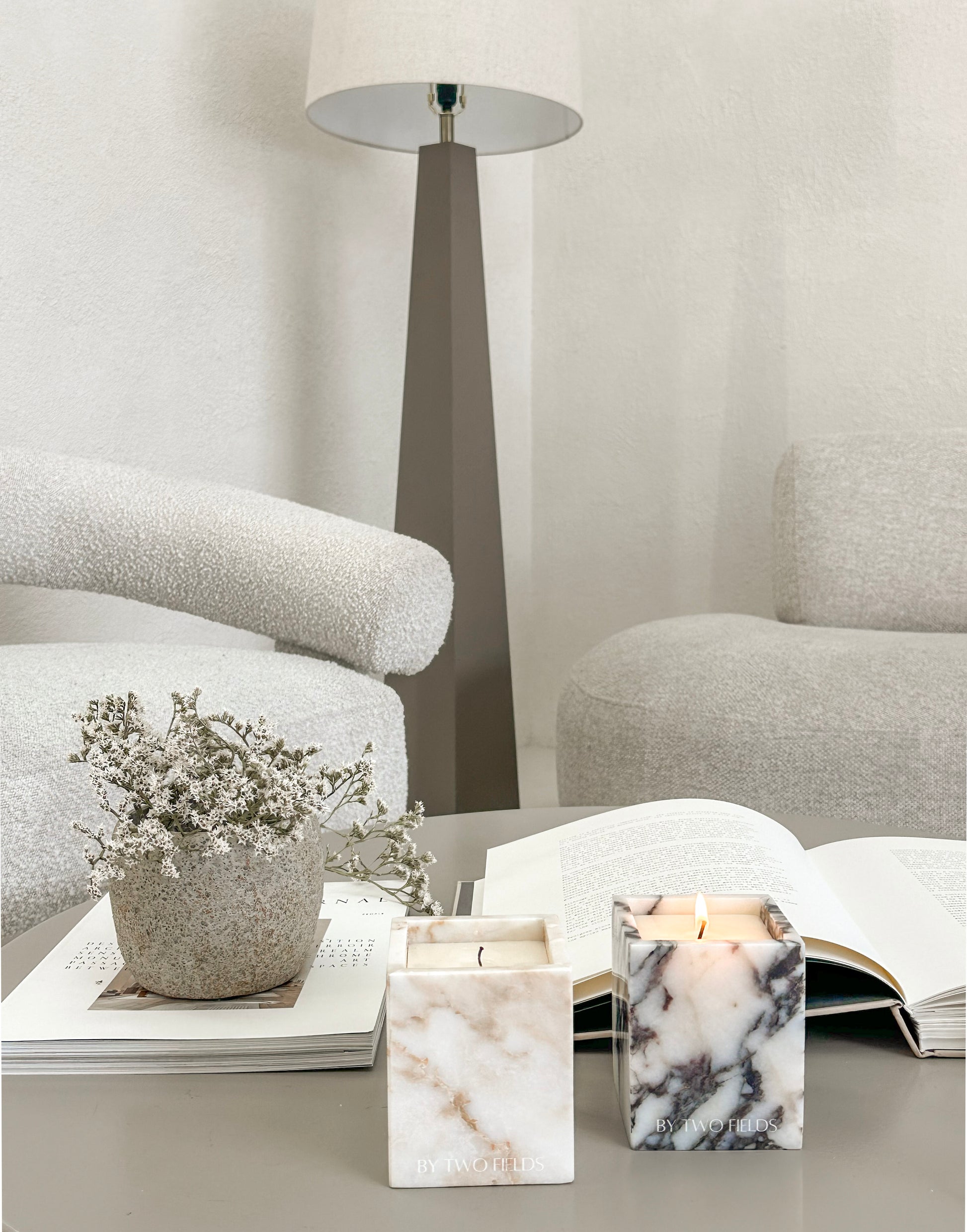 Our system replaces the waste, not the beauty. Each set includes a reusable marble stone vessel and our patent-pending removable liner, designed so you only replace the candle refill — not the container. Every refill is hand-poured in small batches to drop in effortlessly and burn cleanly.